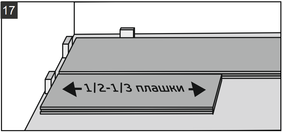 10.4. При смещении на 1/2 - 1/3 плашки относительно соседних рядов (рис. 17) начинайте каждый последующий ряд с части плашки, оставшейся от предыдущего ряда.