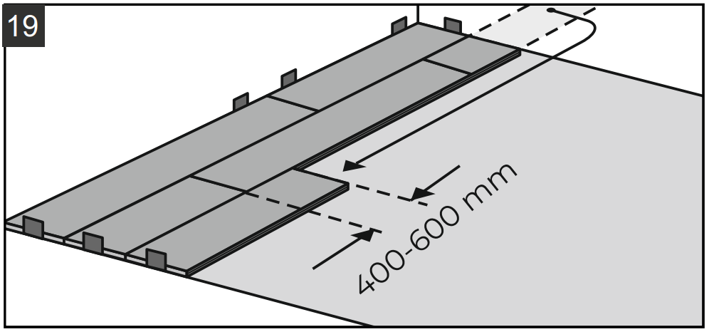 10.5. Возможно, придётся обрезать последний ряд - для более качественной укладки измеряйте ширину элемента с двух сторон, учитывая деформационный зазор 10 мм.