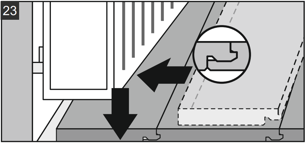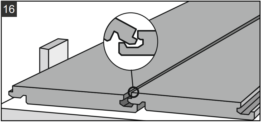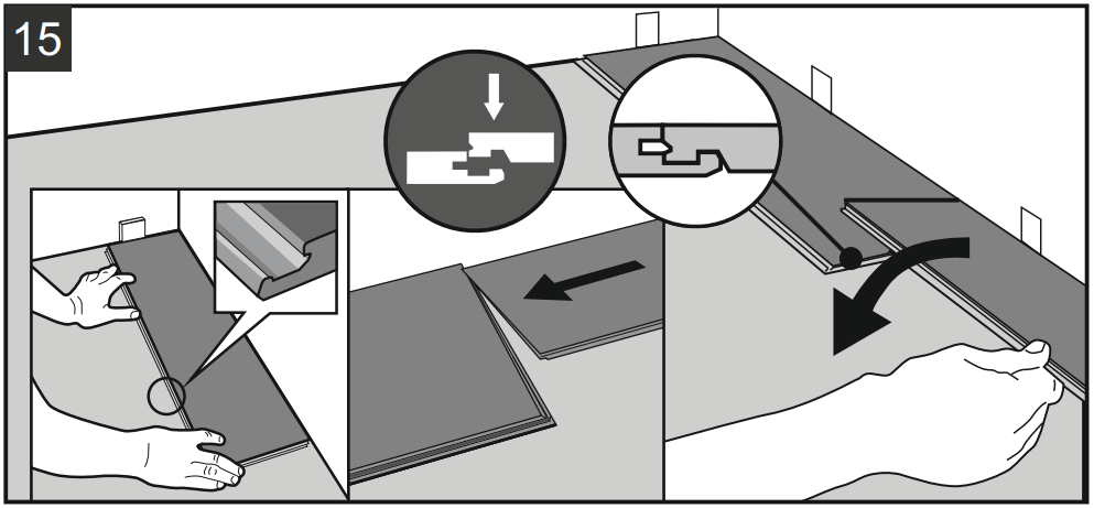 10.3. Аккуратно поместите плашку вплотную к короткому концу предыдущей плашки и защелкните замок одним движением. При необходимости воспользуйтесь резиновой киянкой.